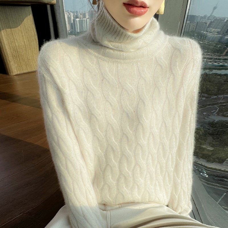 淘宝梦茜韵高端羊绒衫工厂直销店,高领加厚山羊绒衫女卷边麻花毛衣