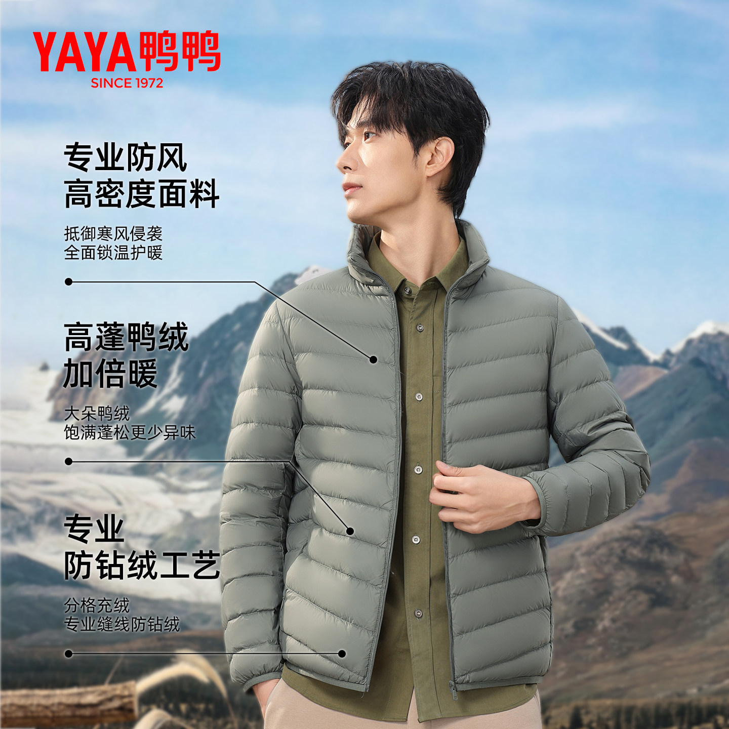 天猫鸭鸭旗舰店,鸭鸭轻薄羽绒服男内胆修身户外,立领修身 90%鸭绒