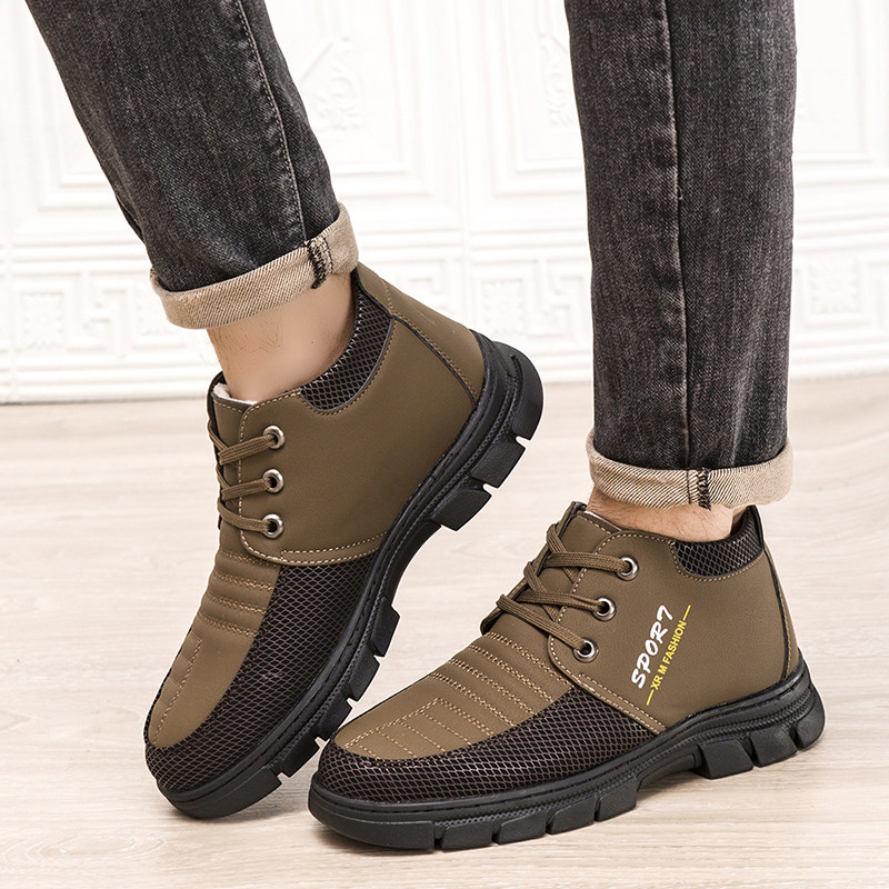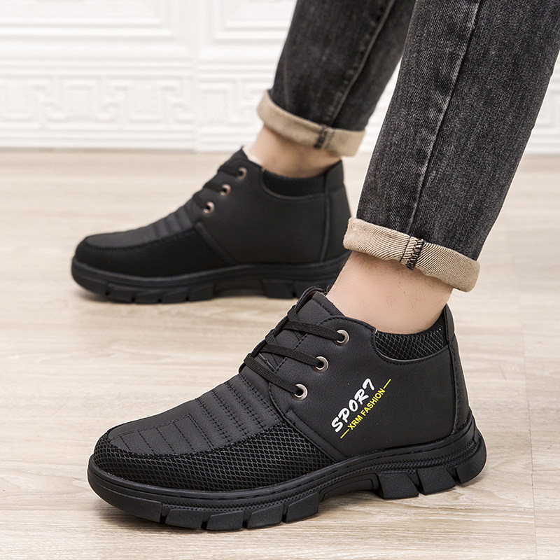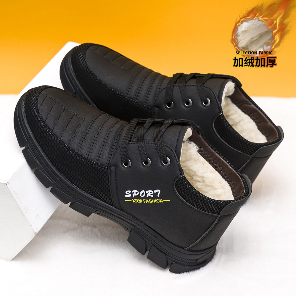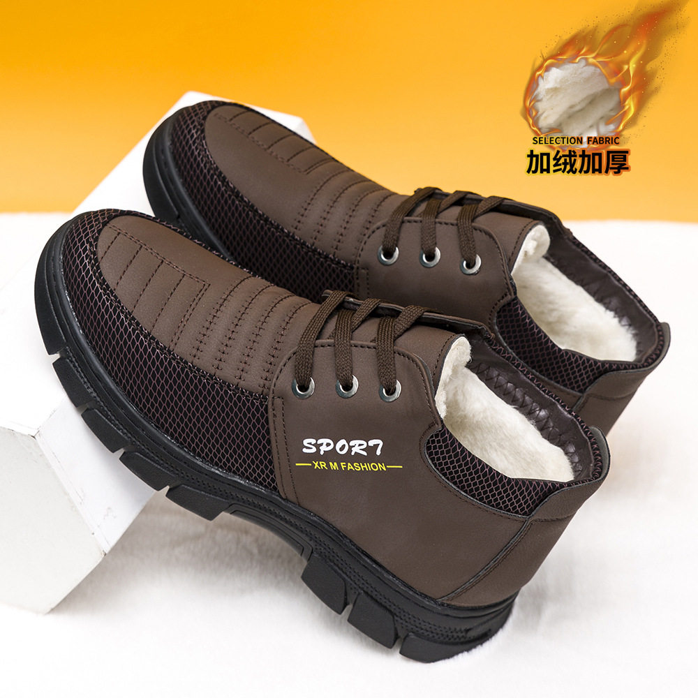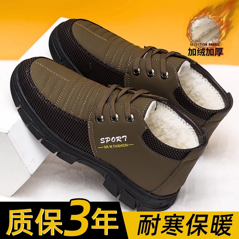 天猫淘工厂美妆直营,冬季棉鞋男加绒加厚中老年雪地靴软底防水高帮皮鞋百搭休闲棉鞋