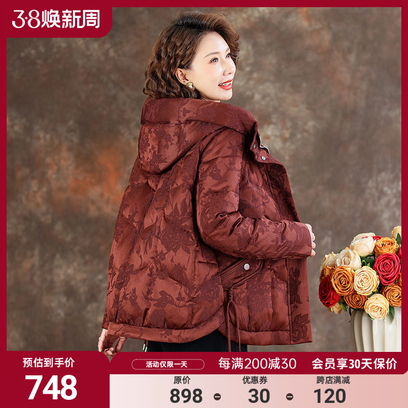 淘宝齐黛真丝,女士国际大牌鹅绒服女2024冬新款连帽加厚保暖妈妈90绒羽绒服外套