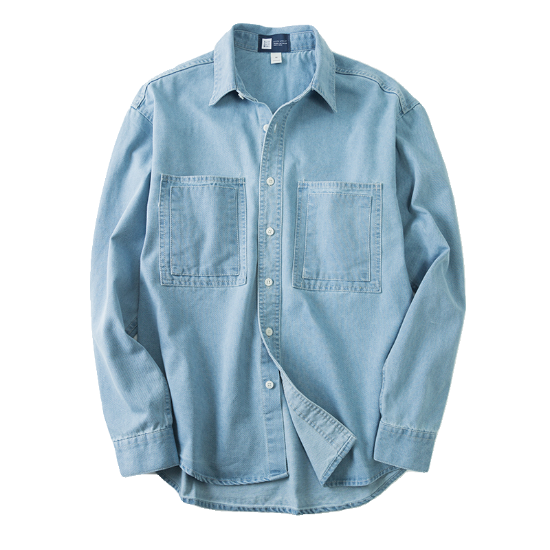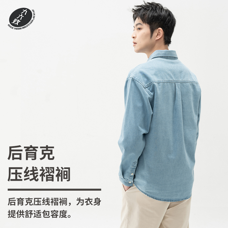 淘宝九六致原创设计,九六致宽松牛仔长袖衬衫男简约