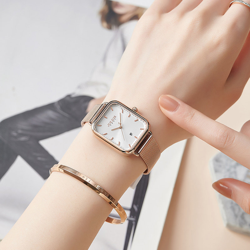 天猫julius聚利时盈硕专卖店,聚利时正品女士韩版优雅显白方形盘,日历窗功能 简约小方表