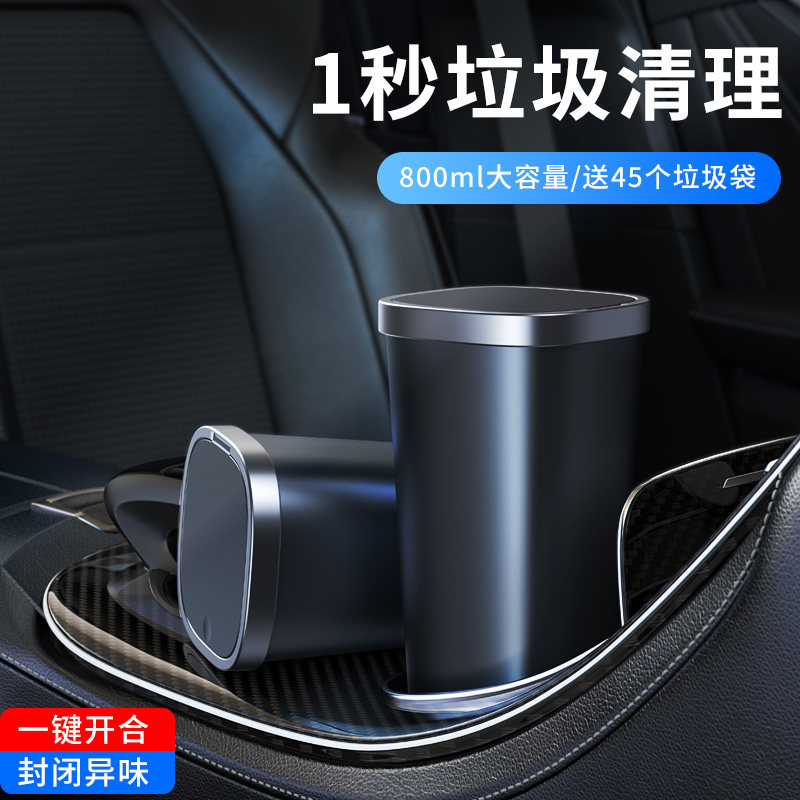 天猫一粒派车品专营店,迷你小号控放收纳箱车载垃圾桶,按压式弹盖 封闭异味 不漏水 800ml大容量