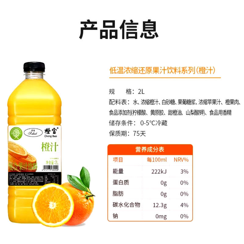 淘宝鑫仔食品批发,橙宝2L橙汁菠萝红西柚苹果非浓缩100%果汁饮料调鸡尾酒基酒辅料
