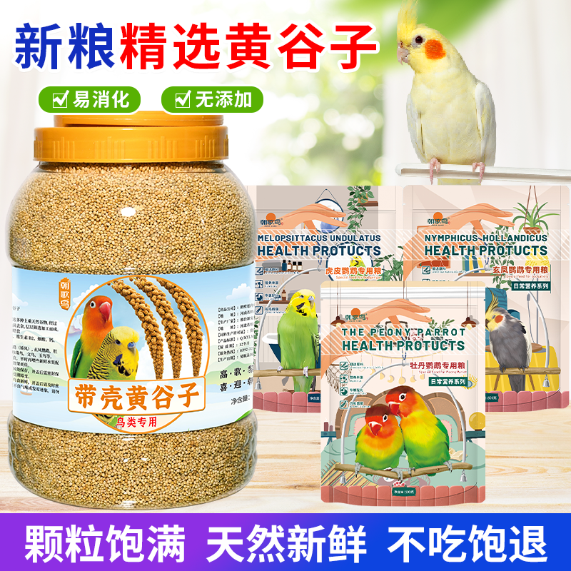 淘宝朝歌鸟宠物用品,新黄谷子鹦鹉鸟粮饲料虎皮玄凤牡丹中小型鹦鹉鸟粮带壳小米鸟食粮