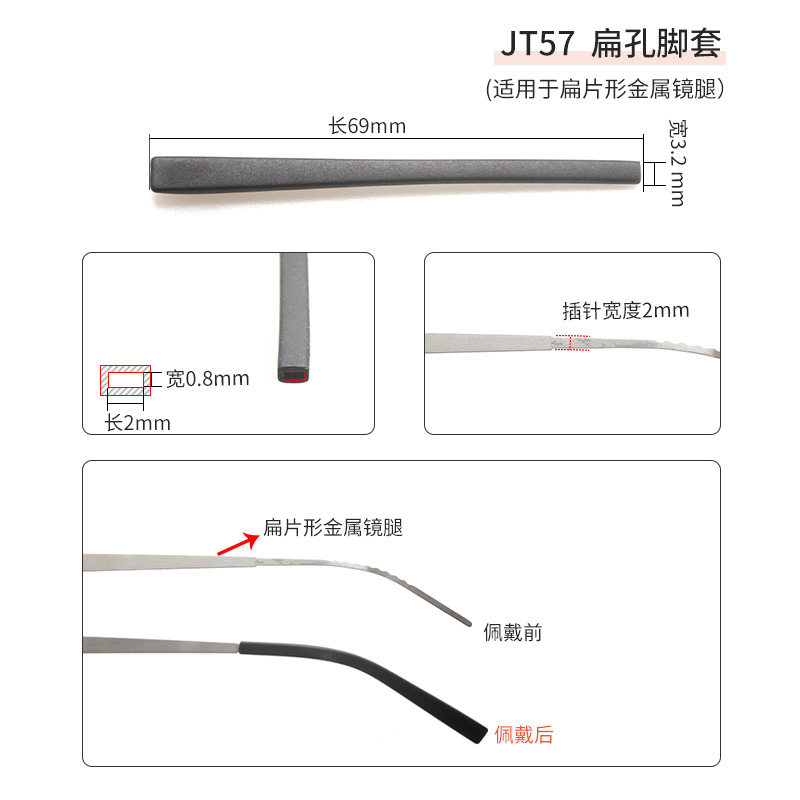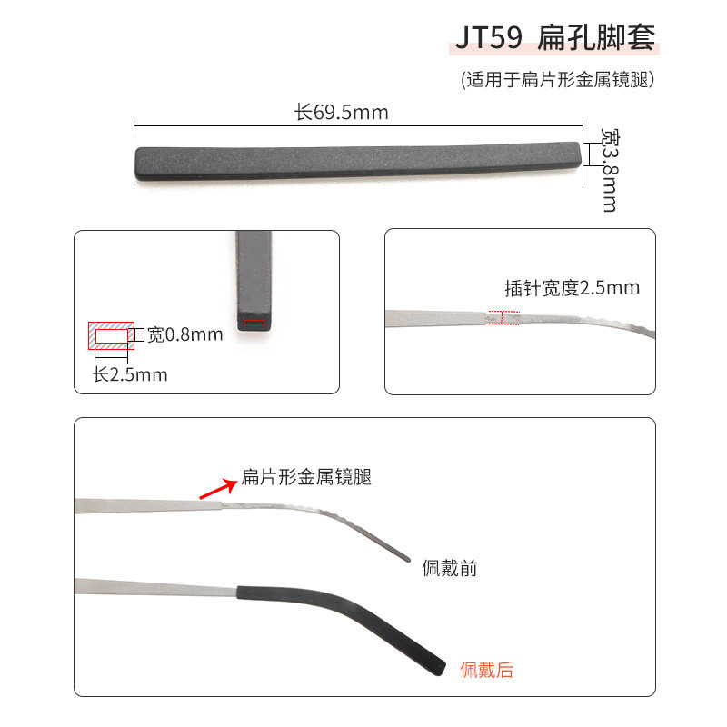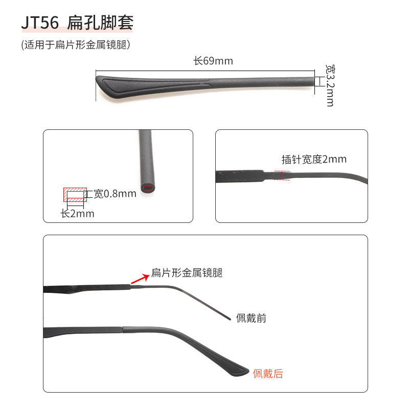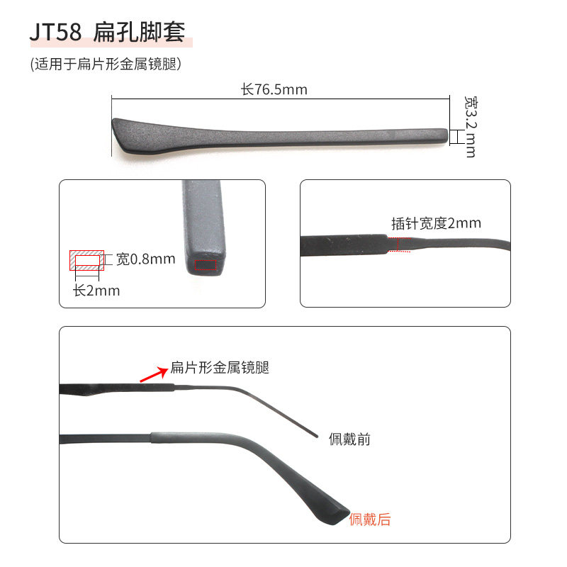 天猫福润昌眼镜旗舰店,钛金属扁片形镜腿专用扁孔软脚套,柔软适中,牢固不松