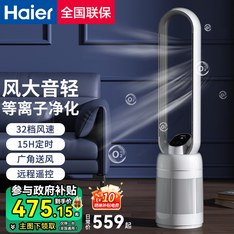 天猫haier海尔环境电器旗舰店,海尔无叶风扇家用变频落地扇,海尔无叶风扇家用节能客厅卧室落地扇