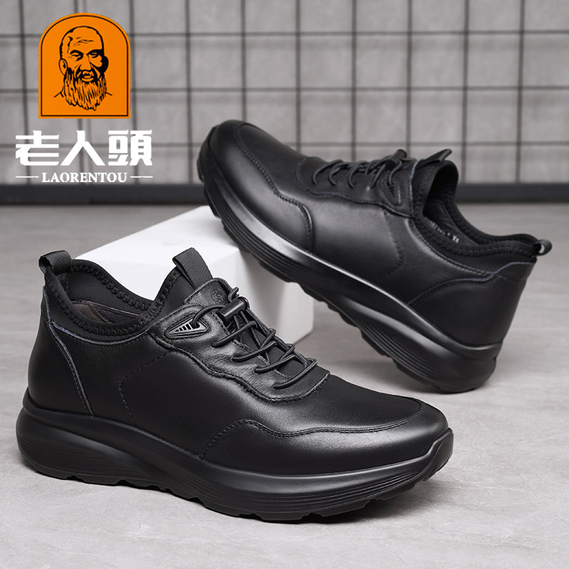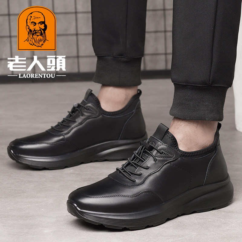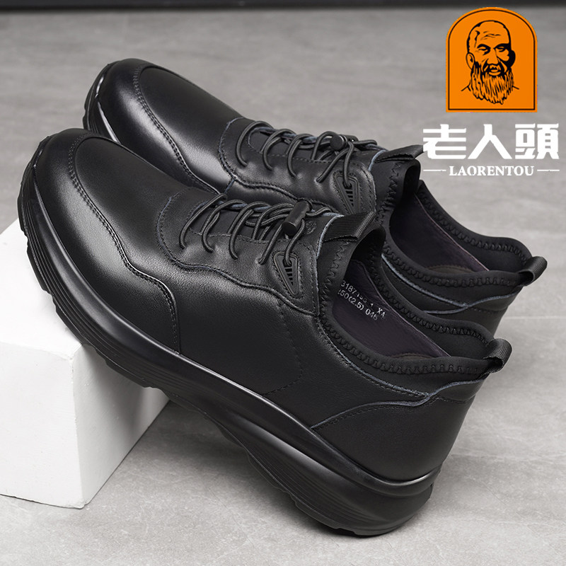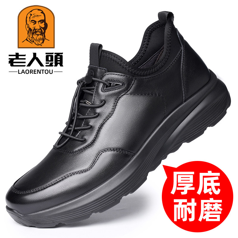 天猫老人头深圳专卖店,老人头秋冬新款真皮皮鞋男,头层牛皮 厚底耐磨