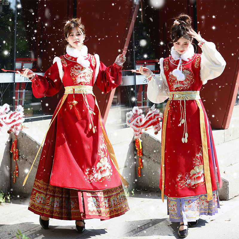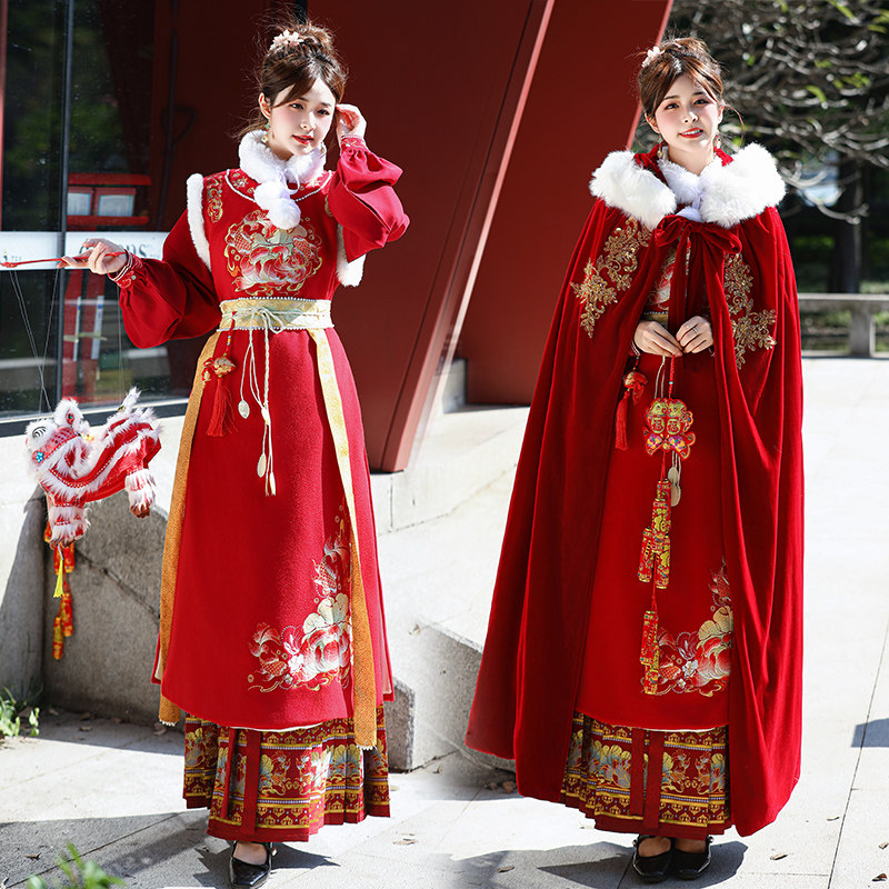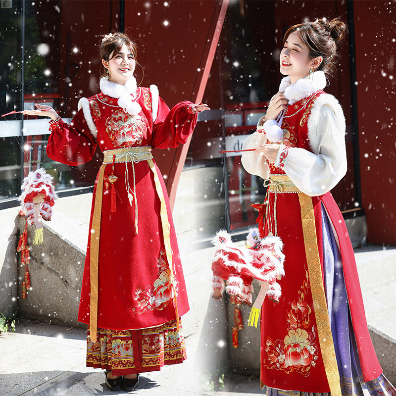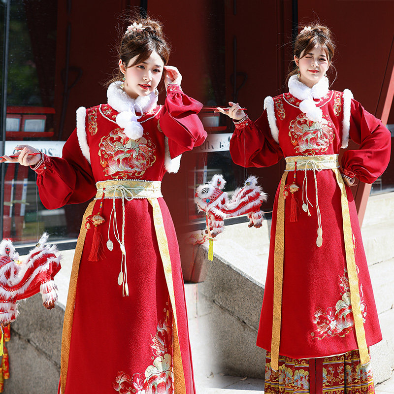 淘宝足甄堡原创大码汉服店,拜年汉服冬大码原创重工加绒保暖
