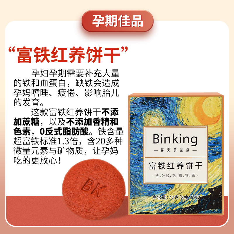 天猫binking旗舰店,Binking富铁红养饼干含铁叶酸,铁含量超富铁标准1.3倍