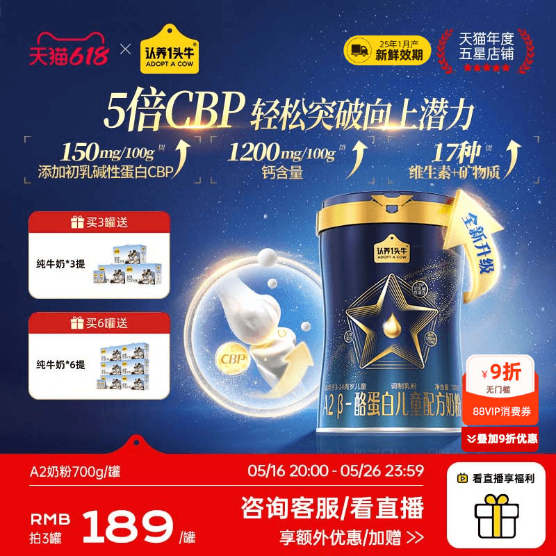天猫认养一头牛旗舰店,儿童成长奶粉700g*3罐
