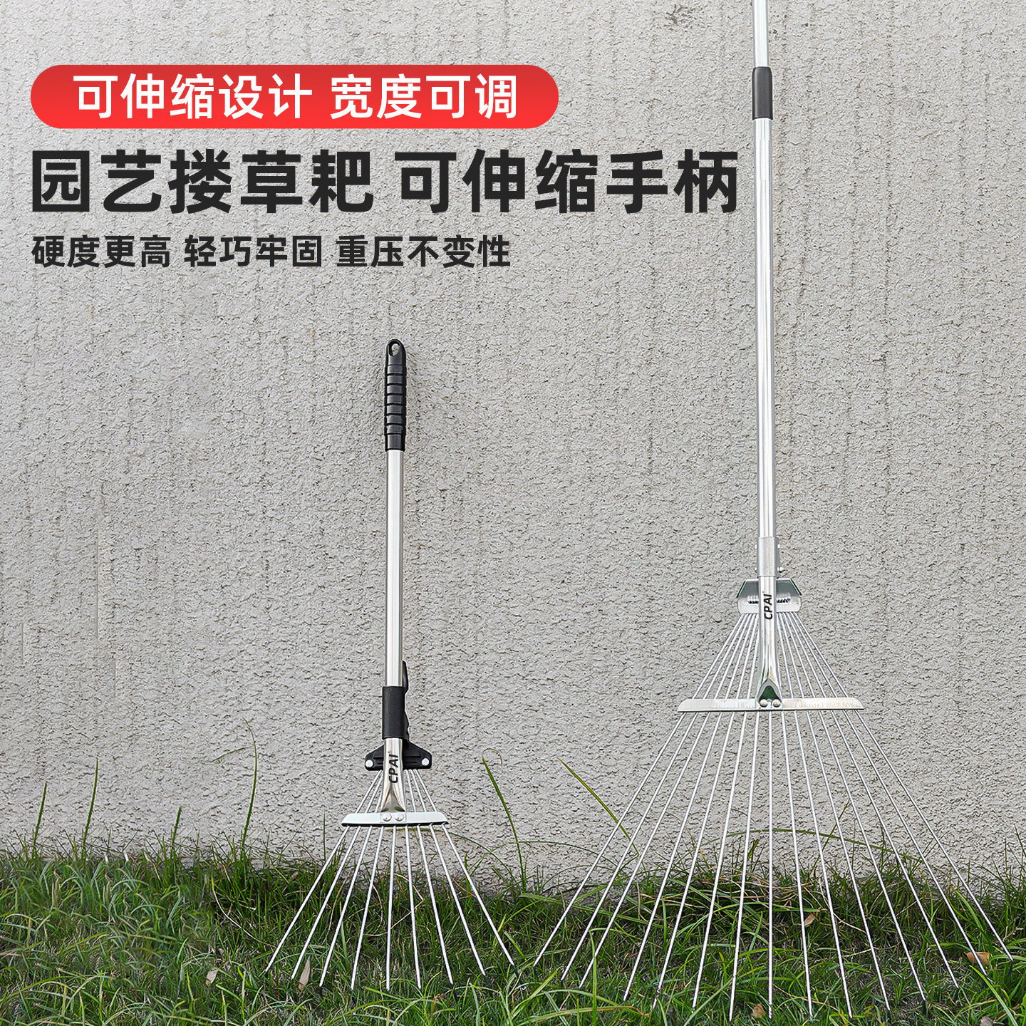 淘宝德国固博园林工具,不锈钢伸缩草耙农用清扫树叶神器