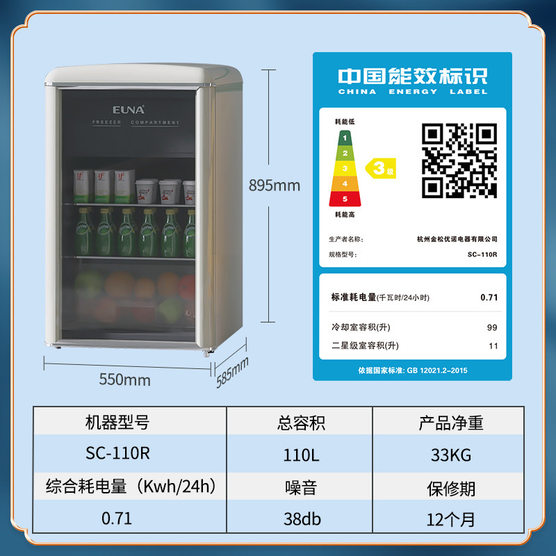 天猫优诺电器旗舰店,euna /优诺sc-110r冰吧小聚饮料柜,冷藏冷冻一体 灰色内胆 防雾隔热 低音低噪