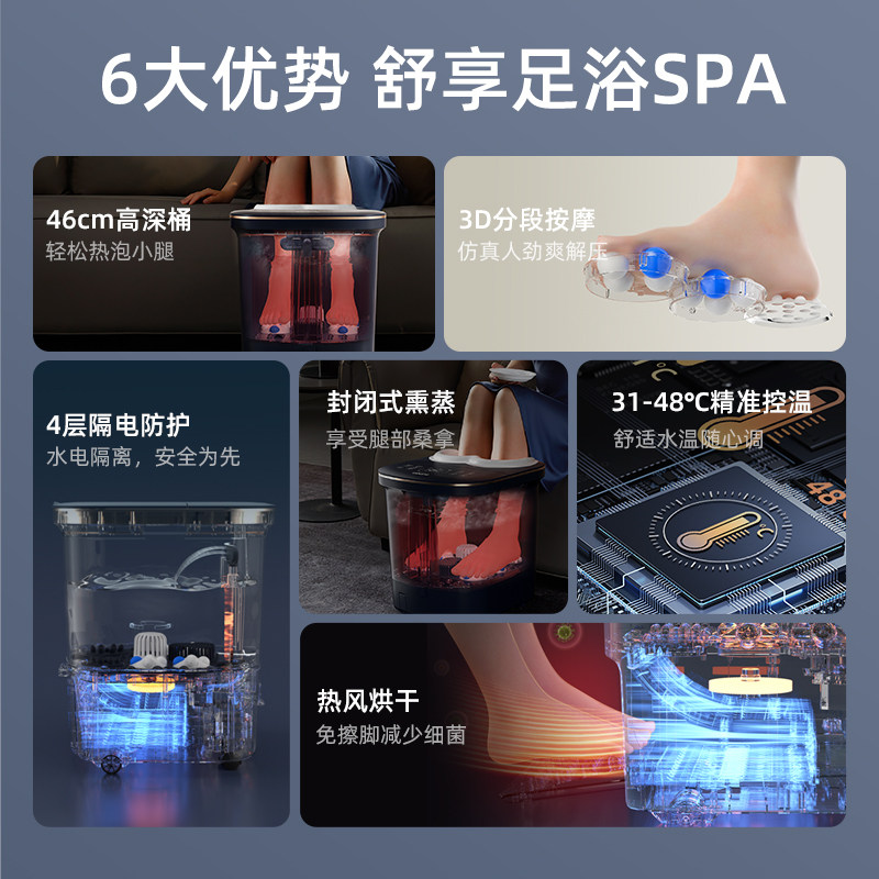 天猫苏泊尔按摩器材旗舰店,苏泊尔泡脚桶恒温加热全自动按摩,全自动按摩带烘干足浴桶养生足疗高深桶蒸熏