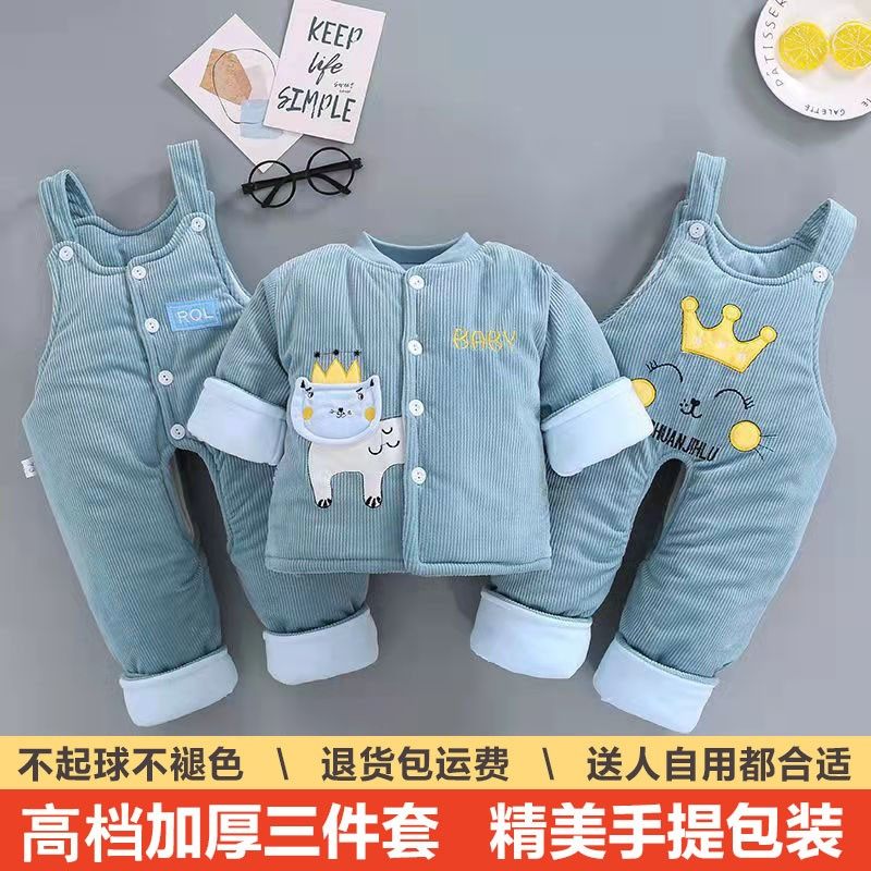 淘宝涵涵童装引领潮流,宝宝棉服套装加厚外穿背带裤棉衣