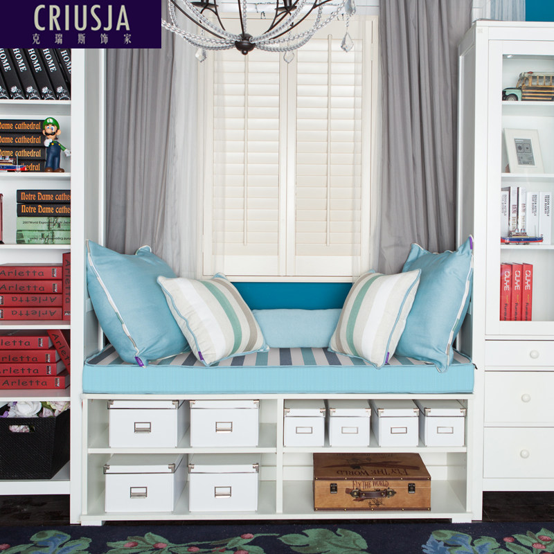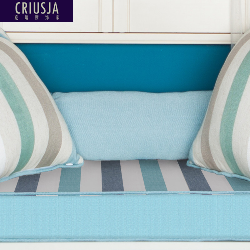 天猫克瑞斯饰家旗舰店,定做沙发布套蓝色条纹榻榻米垫,异形窗台垫 定做订做 防滑可拆洗