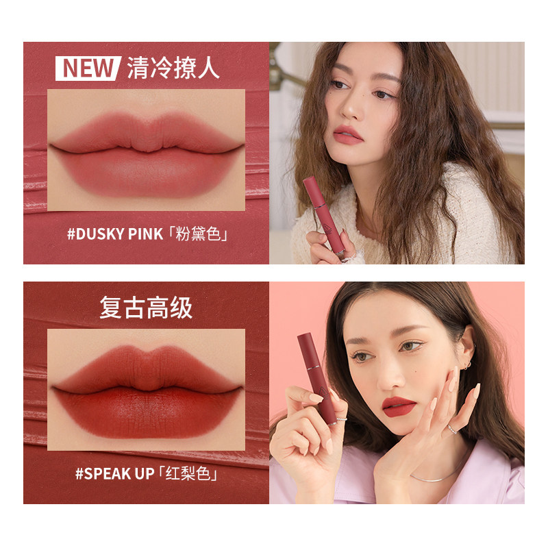 【官方正品】3CE丝绒唇釉 秋冬新品粉黛色雾面哑光慕斯口红