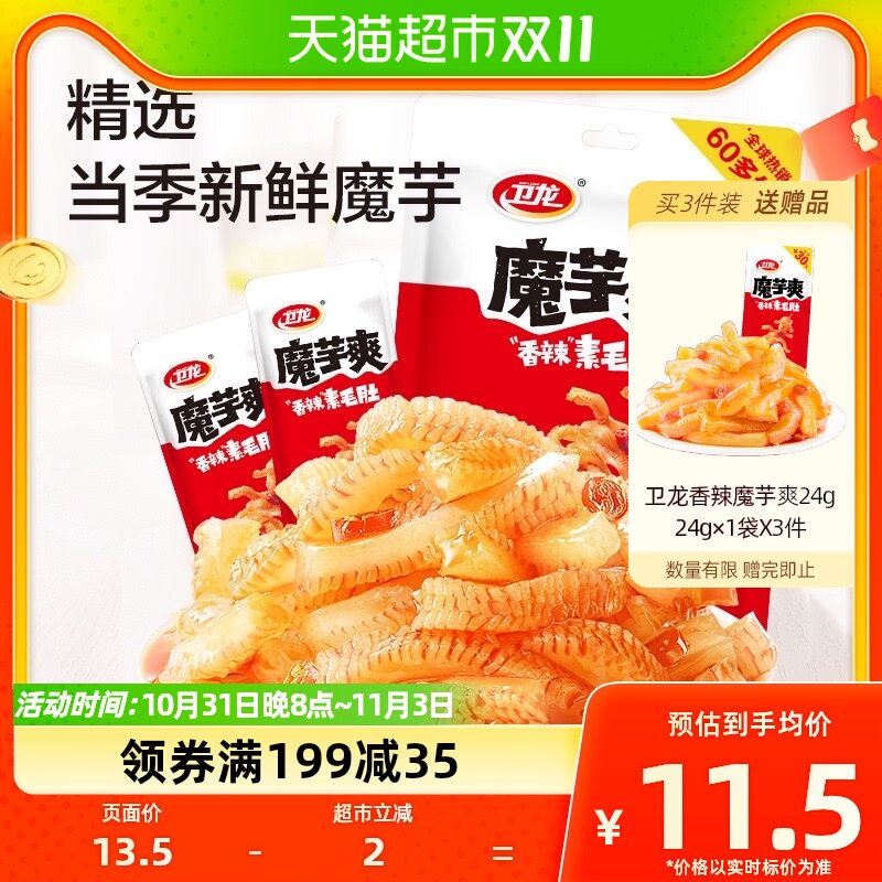 天猫超市,卫龙辣条魔芋爽香辣味180g品素毛肚,香辣弹爽解解馋 独立小包随时开吃