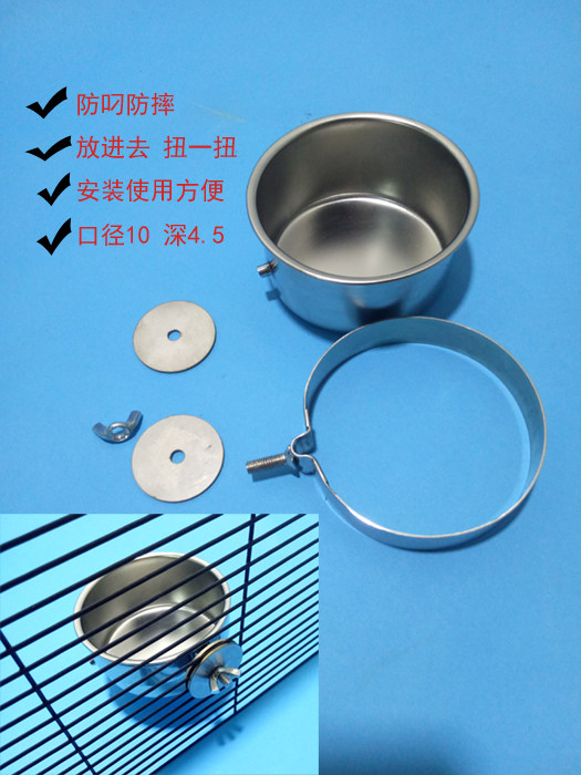 淘宝小豆包宠物用品工作室,笼内用不锈钢防咬食杯食盒鹦鹉食杯