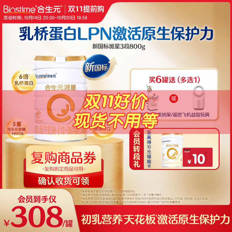 天猫合生元官方旗舰店,合生元新国标派星幼儿配方奶粉3段800g进口奶粉 乳桥蛋白LPN