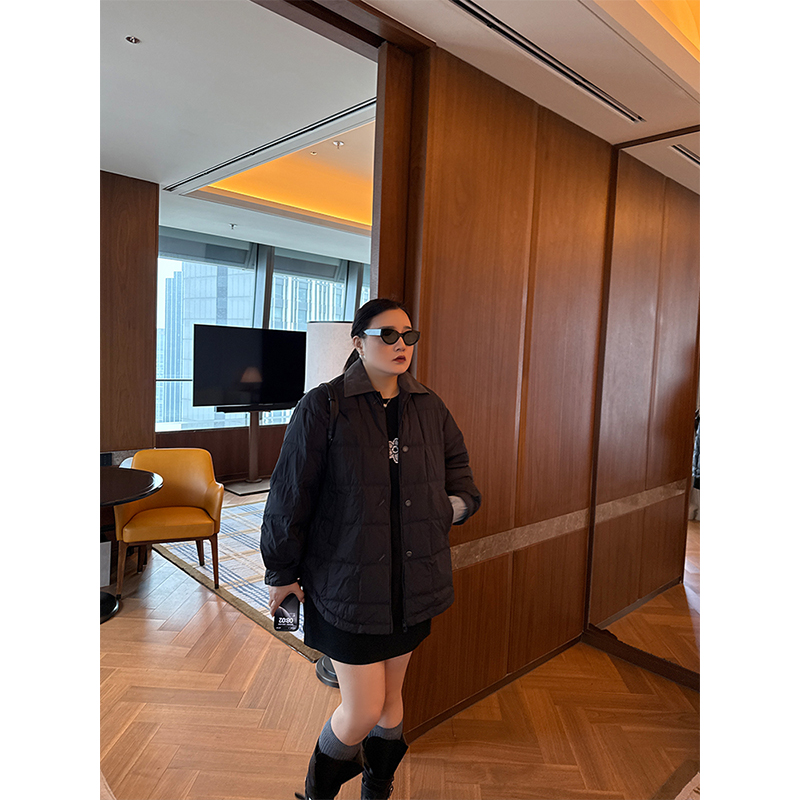淘宝QBXX STUDIO 铅笔小鑫的店,铅笔小鑫大码女装 翻领方格 90白鸭绒 简约拉链羽绒服