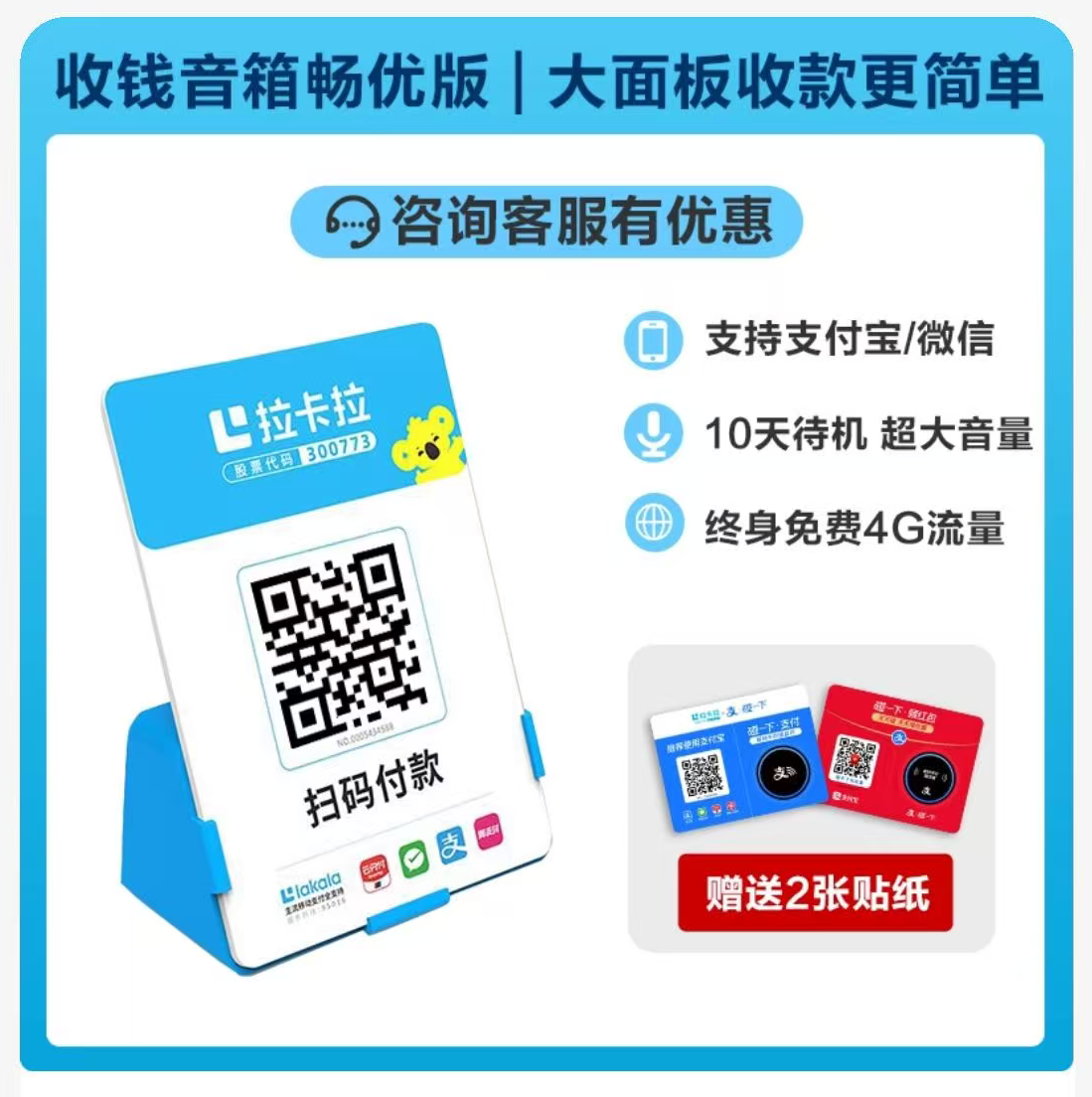 淘宝拉生意真商店,拉卡拉0.25%微信支付宝商家收款码二维码语音提示器音箱播报器