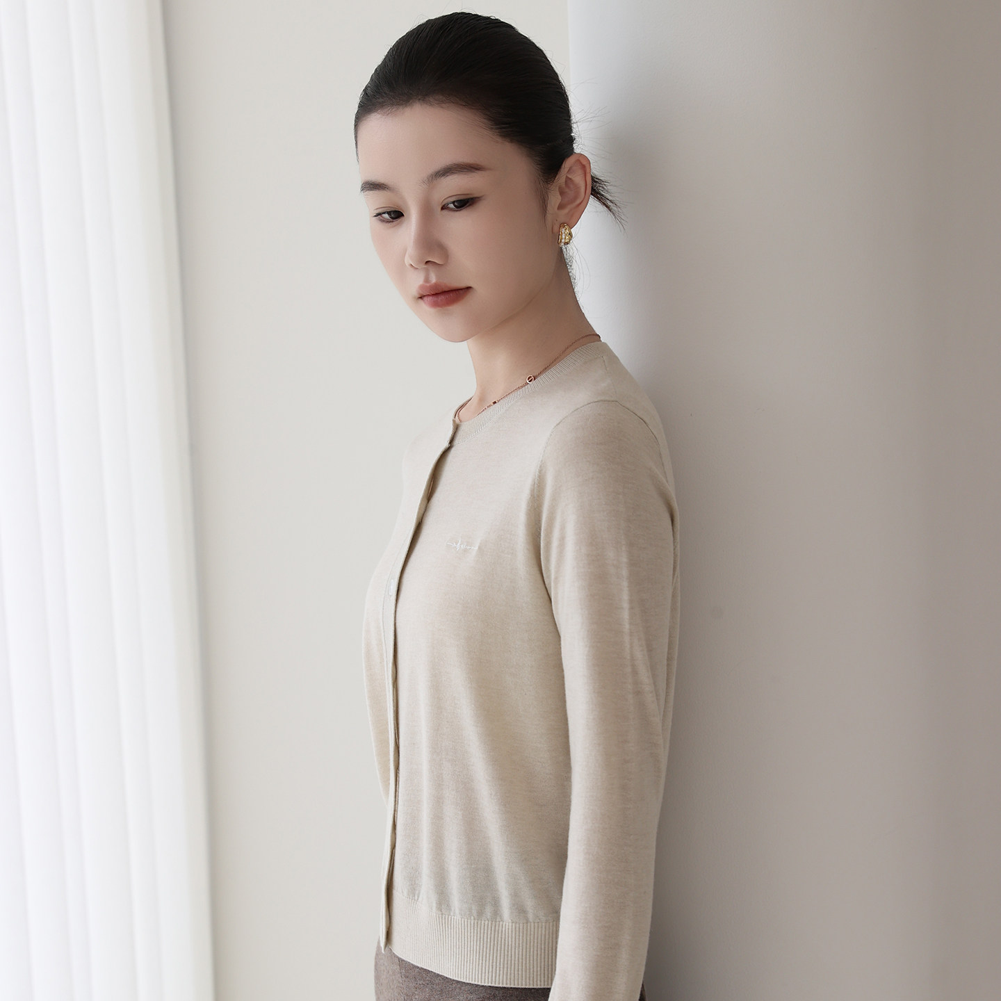 2025秋季新款镂空宽松不褪色女士纯棉毛针织衫女时尚长袖衬衫提花