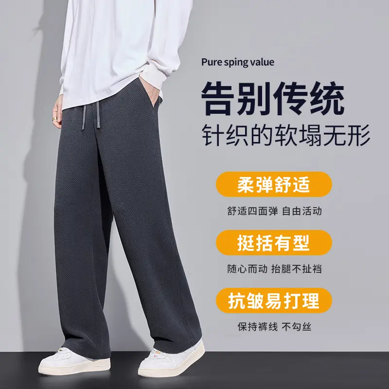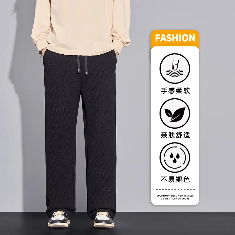 淘宝顽皮甄选店,秋冬新款斜纹针织休闲裤垂感挺括显瘦潮流直筒裤加绒加厚品质男裤