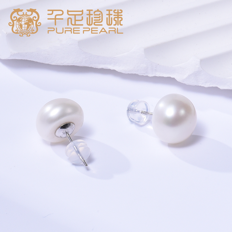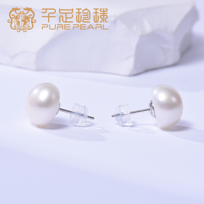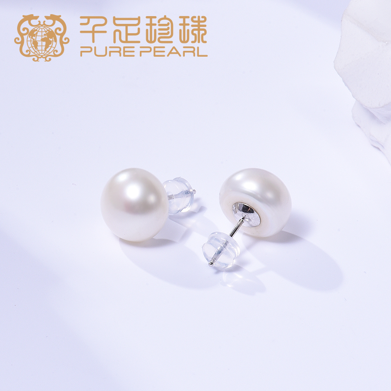 天猫千足山下湖专卖店,千足11-12mm大颗粒淡水无核珍珠s925银耳钉百搭,潮流精品,品质保证