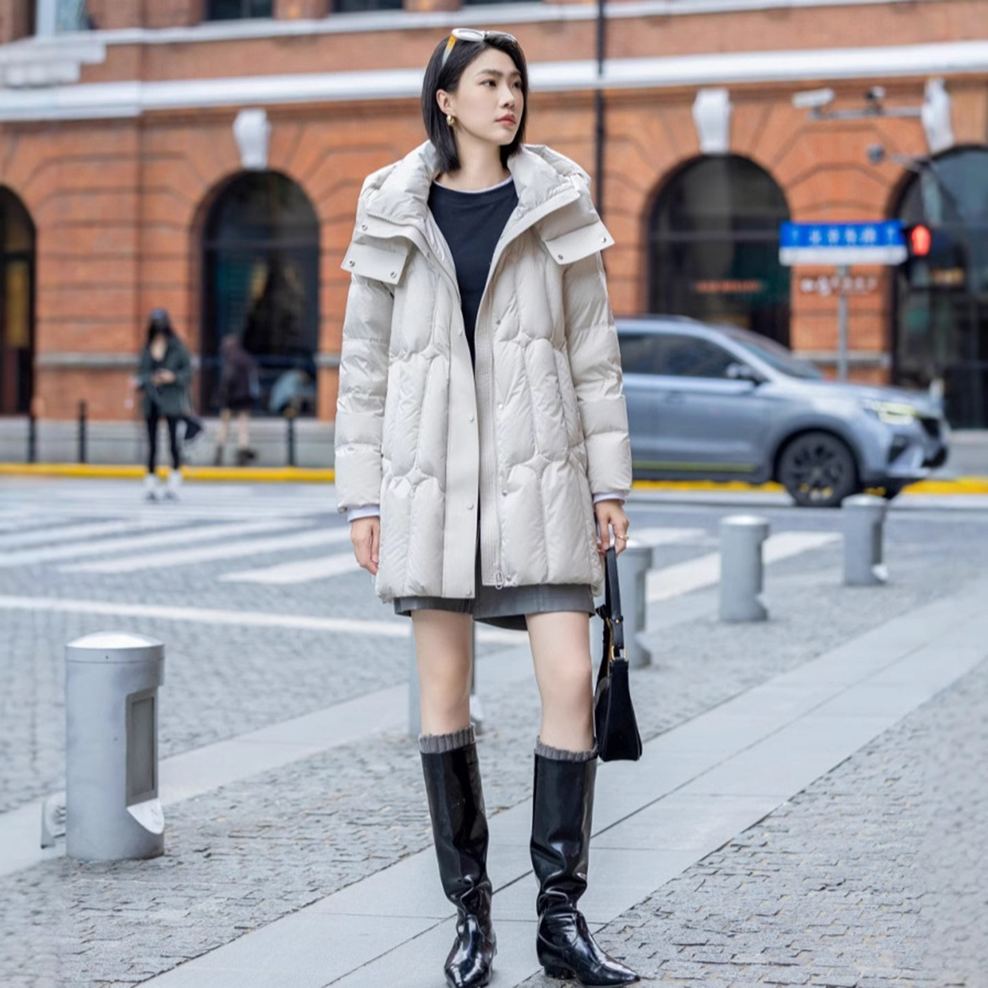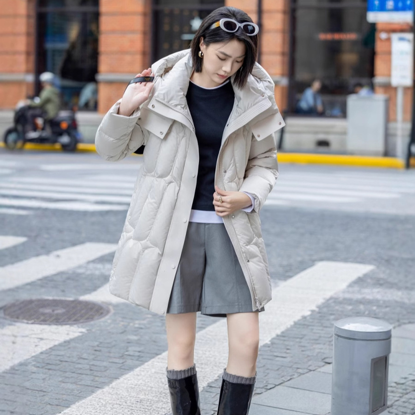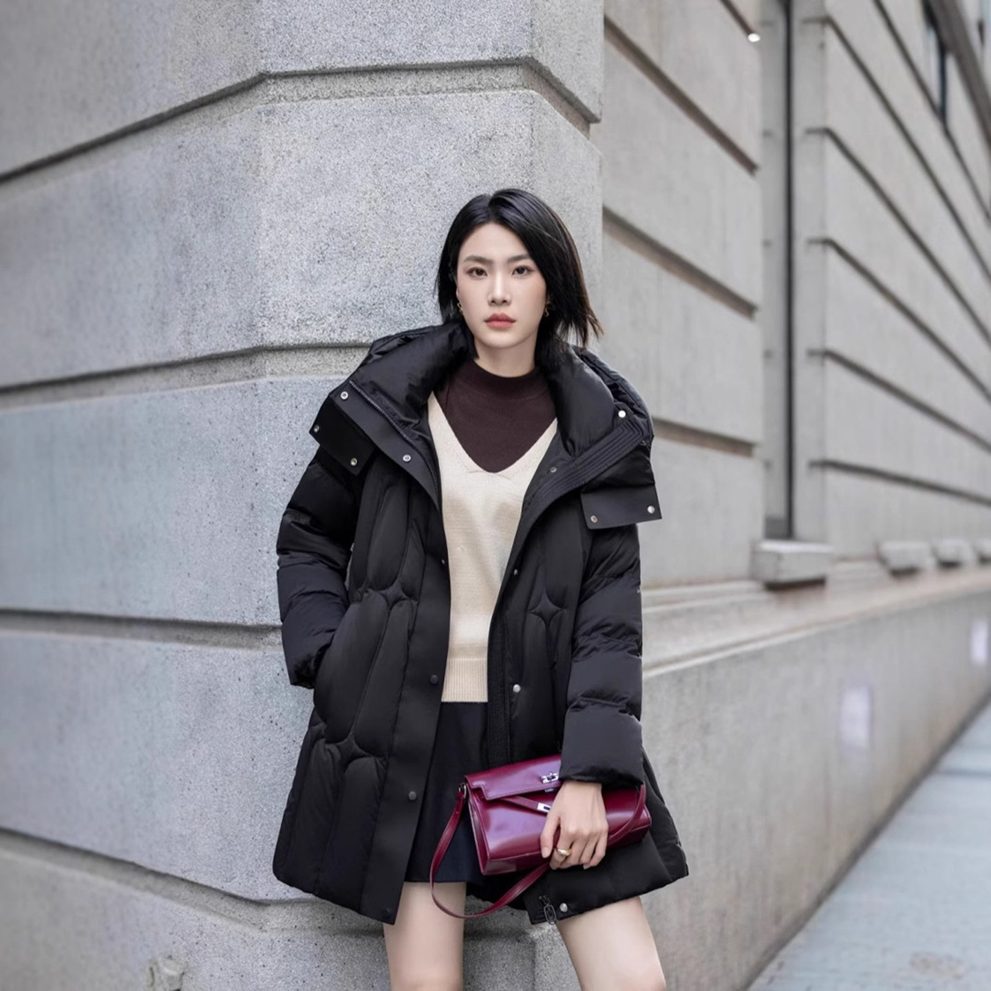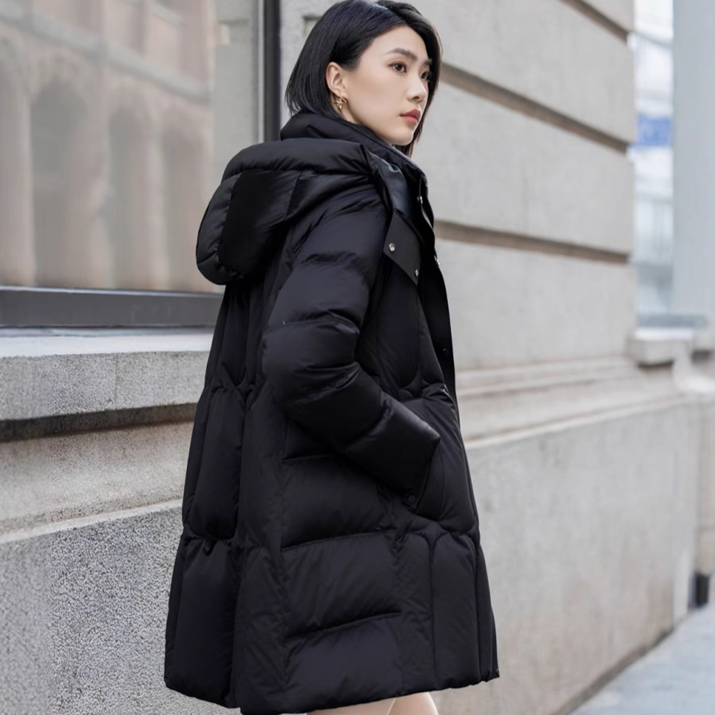 淘宝云朵衣记,鹅绒小众中长款黑色女羽绒服