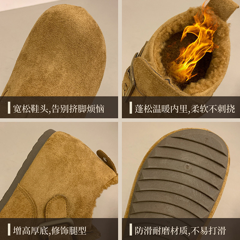 天猫淘工厂美妆直营,加绒勃肯鞋女2025冬季新款皮毛一体雪地靴复古一脚蹬厚底毛毛棉鞋