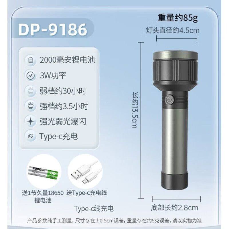 淘宝子轩电器店,久量9186可充电可换2000毫安锂电强光远射家用应急户外便携手电筒