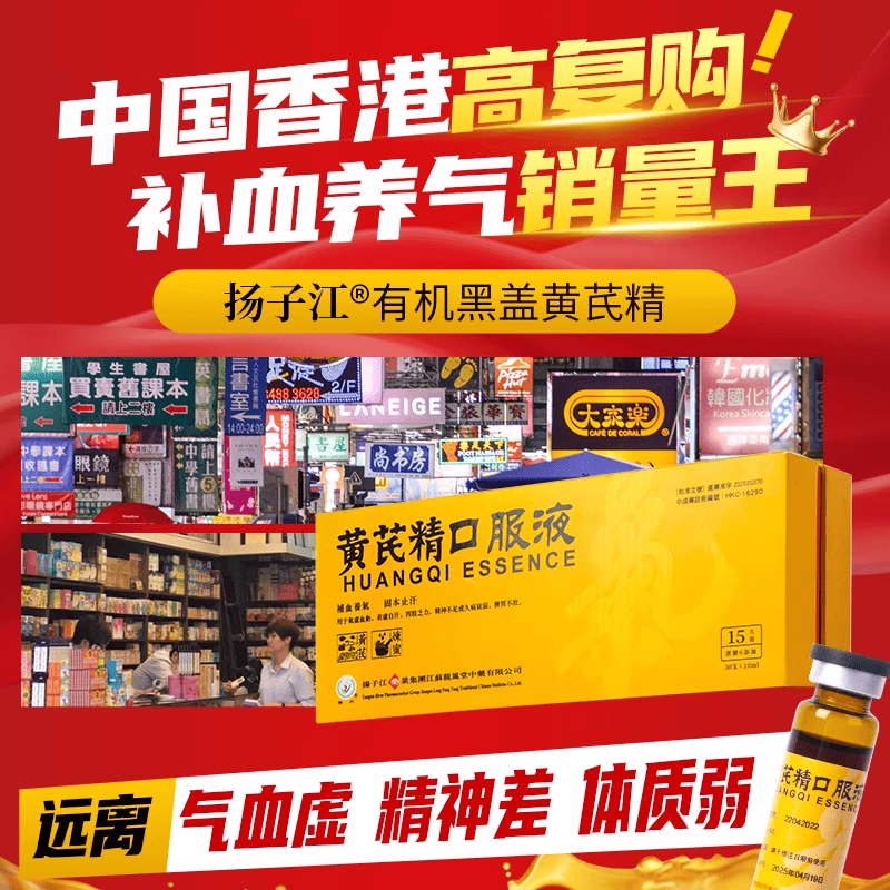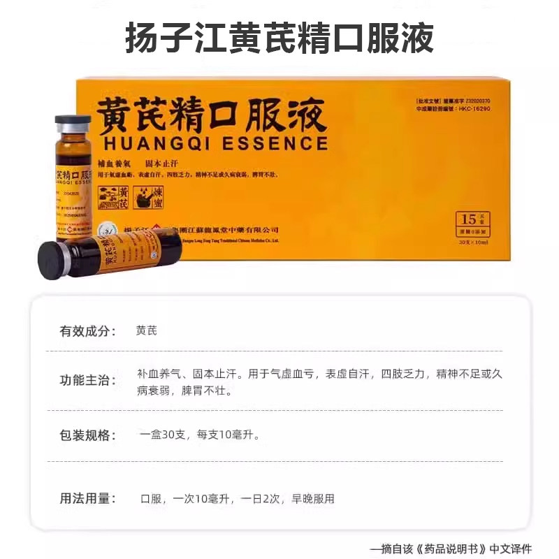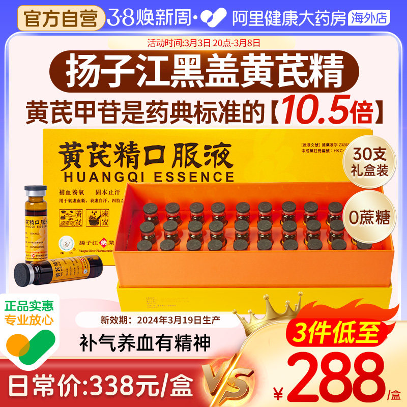 天猫阿里健康大药房海外店,扬子江黄芪精口服液港版黑盖礼盒装补血养气固本止汗补气官方正品,有机黄芪 港版黑盖