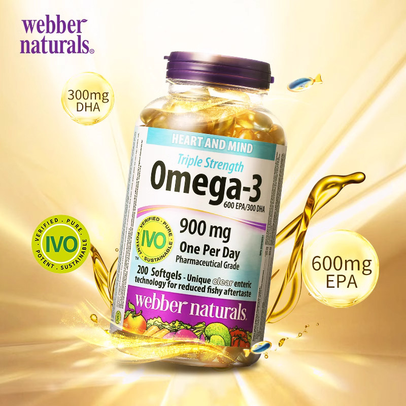 天猫CAC保健海外专营店,伟博3倍浓缩omega3深海鱼油200粒,3倍高浓缩omega3,呵护心血管健康