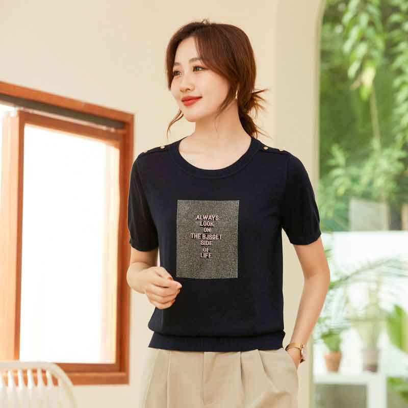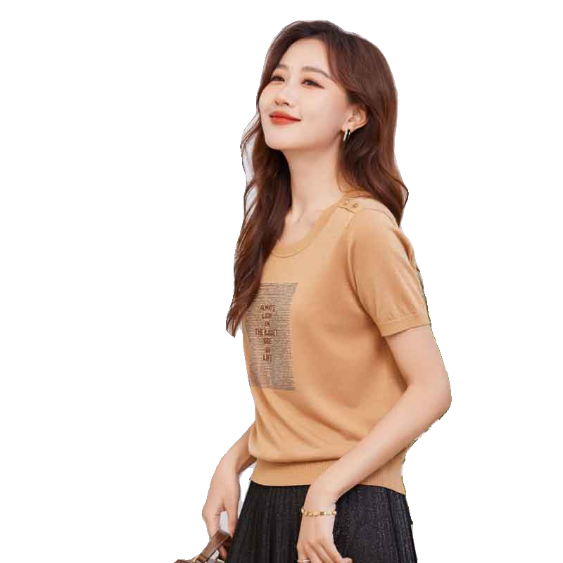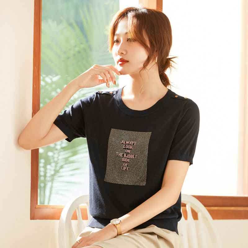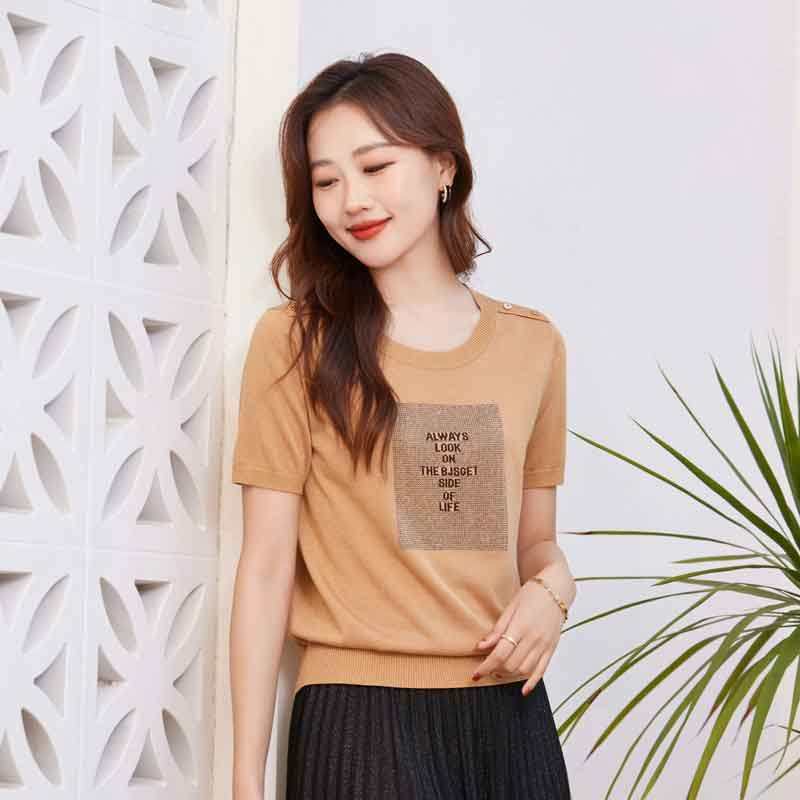 淘宝宝迪莱丝天丝针织衫,夏季天丝套头圆领短袖针织衫