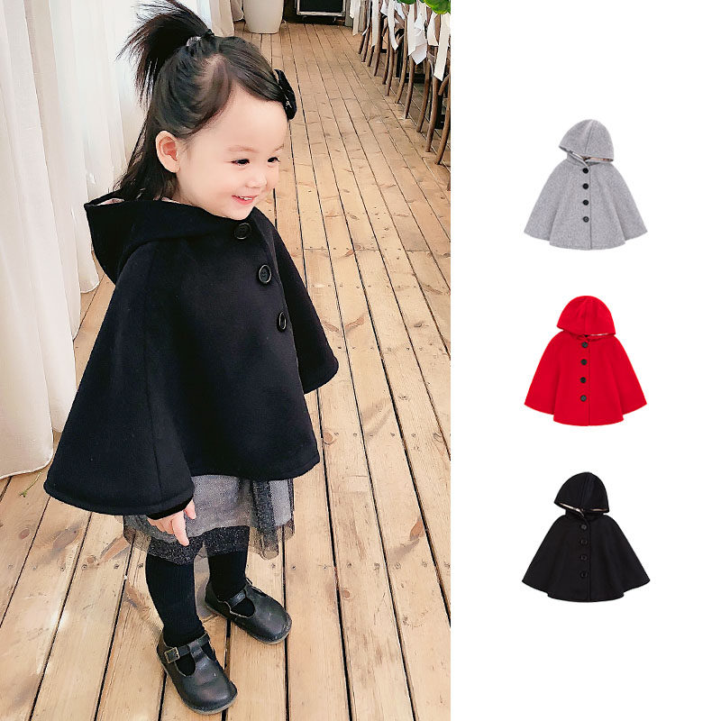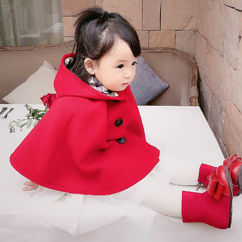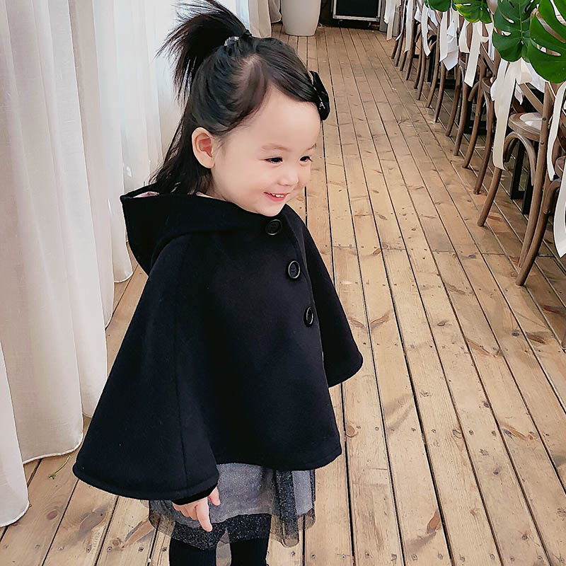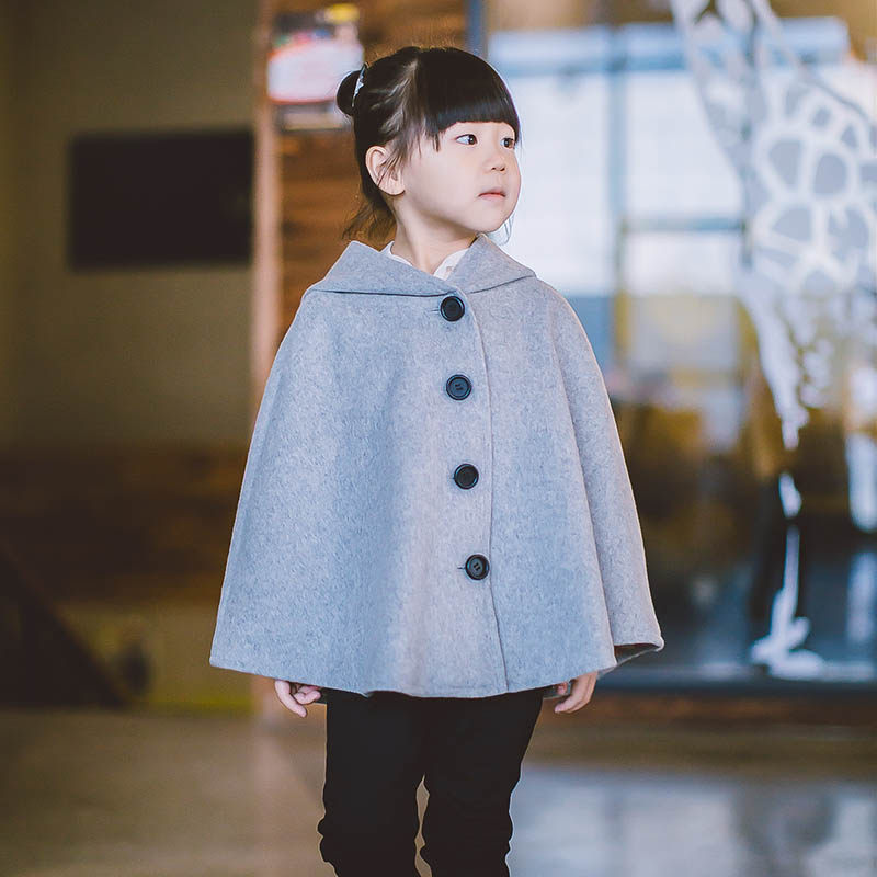 Toulejour女童羊毛呢斗篷 春秋冬款披风保暖披肩洋气儿童连帽外套