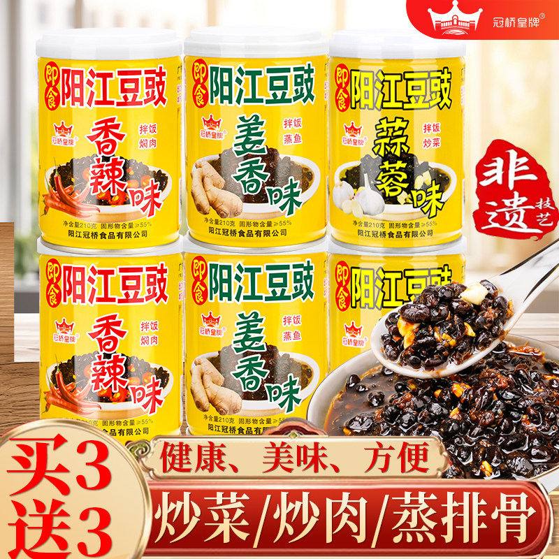 天猫冠桥皇牌旗舰店,广东正宗阳江豆豉酱210g6罐装