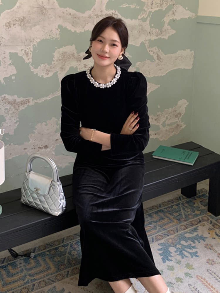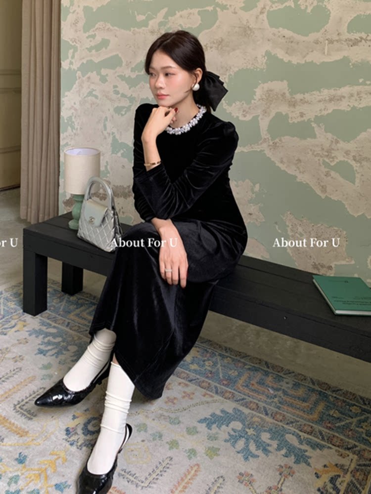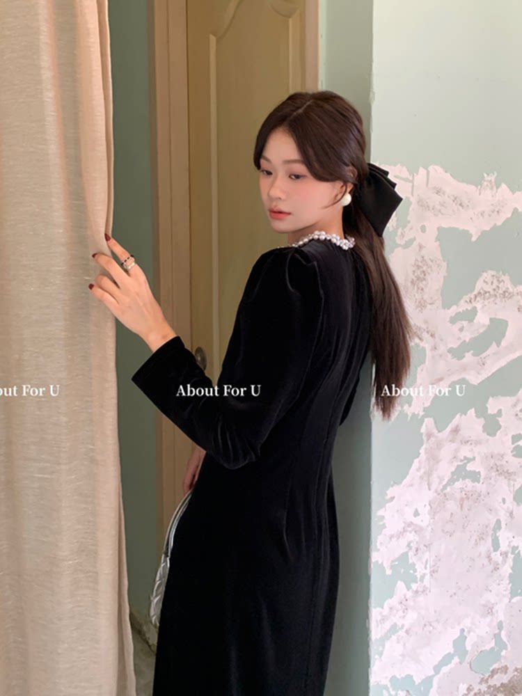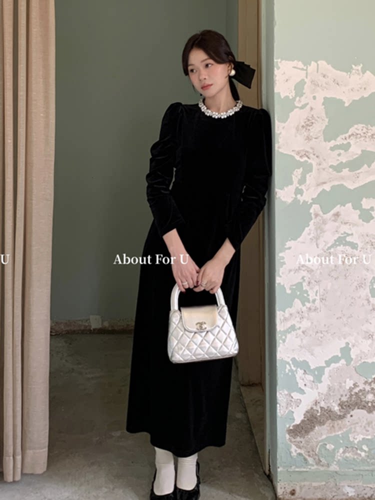 淘宝ELAY花肆,富家千金珍珠丝绒连衣裙