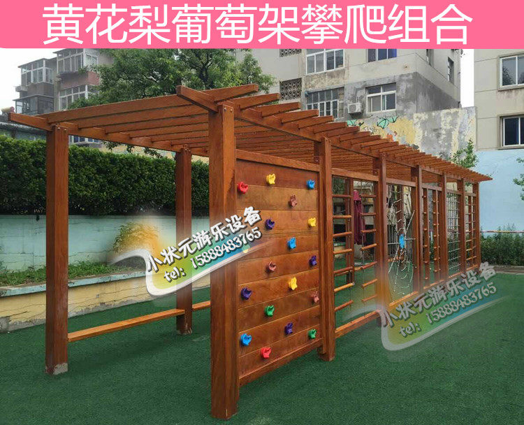 淘宝大叔正品供应链20,新款黄花梨体能训练攀爬架攀岩墙儿童户外长廊攀爬葡萄架组合进口