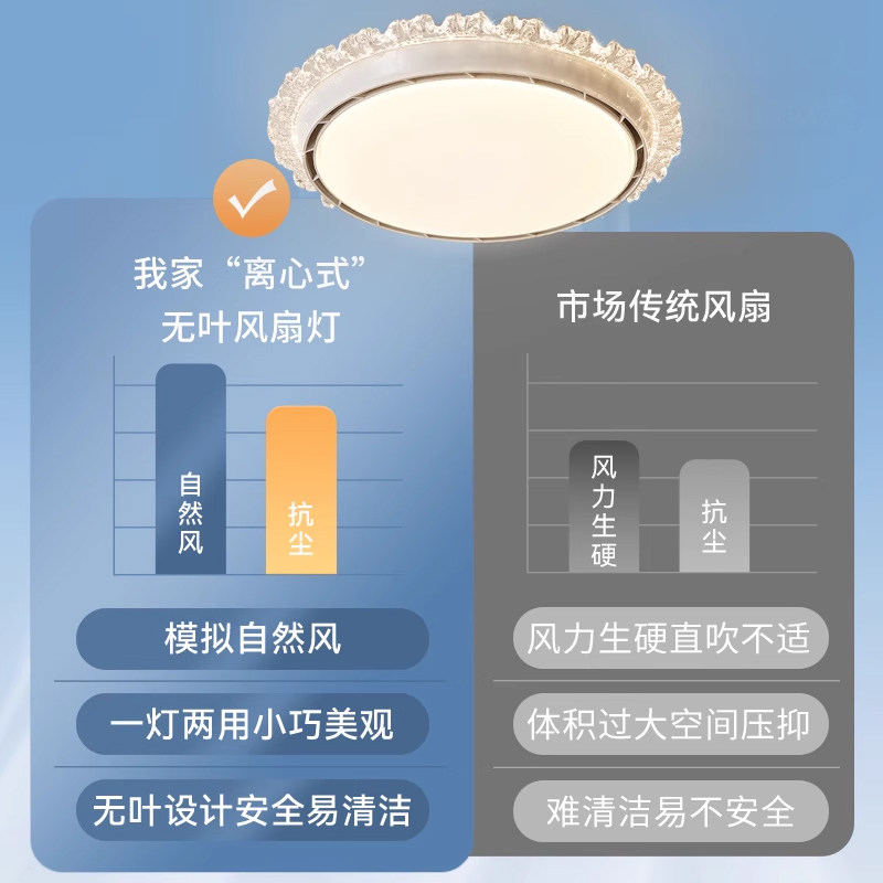 天猫君御灯饰旗舰店,【热销卧室无叶风扇灯】隐形静音,全光谱 五年质保 健康护眼 无频闪 防近视