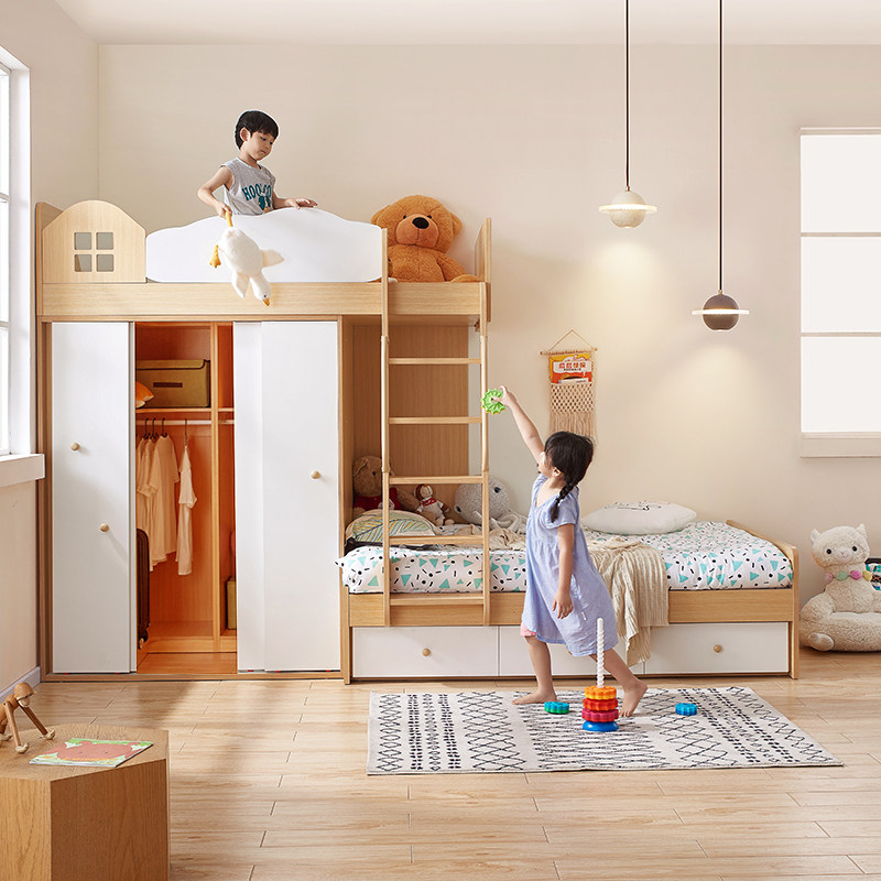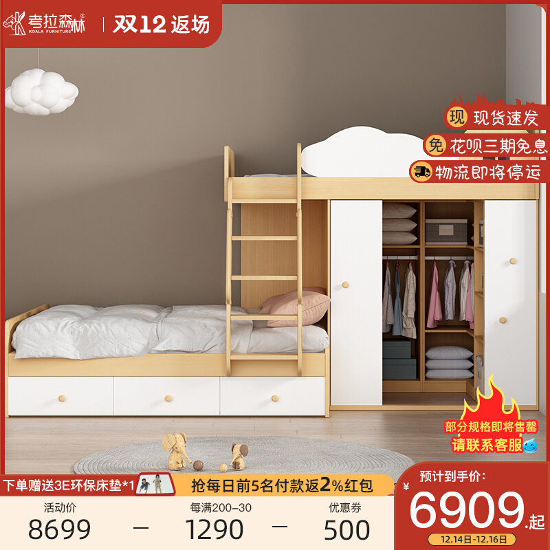 淘宝考拉森林 多功能儿童家具,交错式上下床多功能组合床儿童衣帽间高低床子母床小户型上床下柜