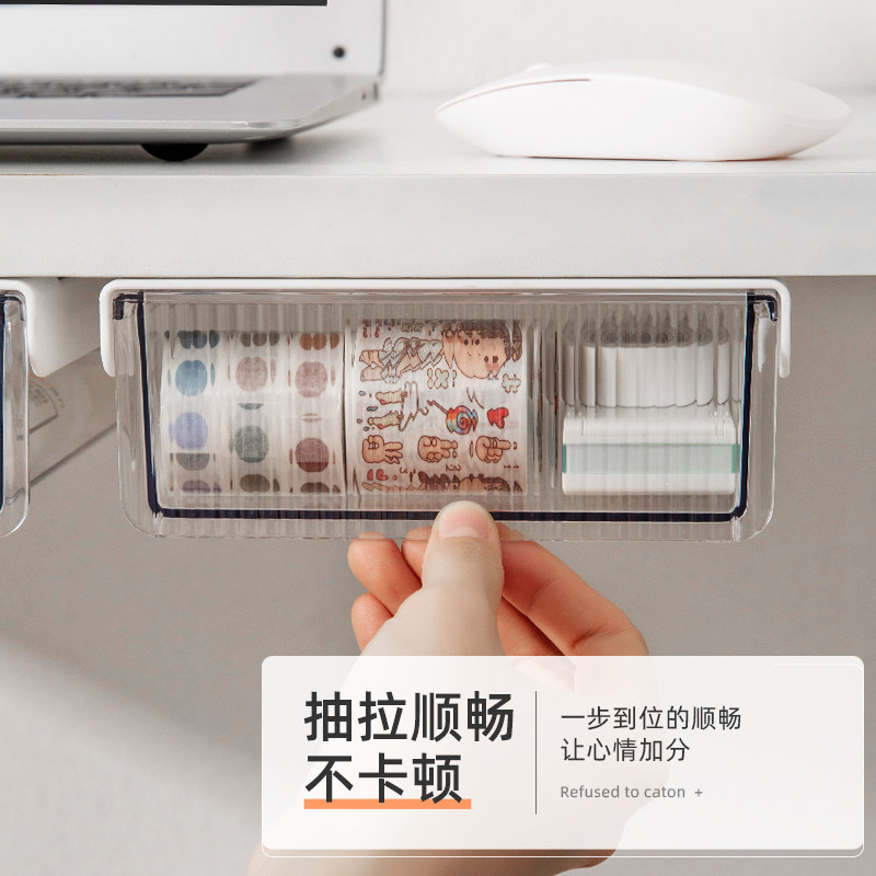 天猫杜卡迪旗舰店,桌下隐藏收纳盒笔筒儿童文具盒,桌下隐藏式 大容量 抽拉顺滑 强力无痕胶