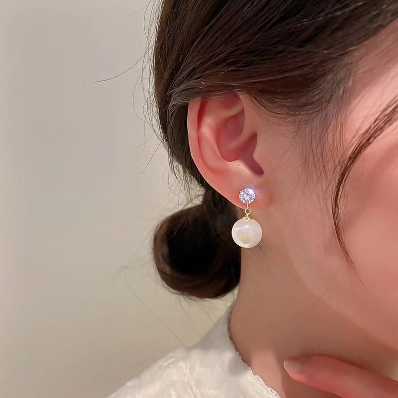 S925银针韩版耳钉人鱼姬珍珠耳环女轻奢高级感小众设计气质耳饰女