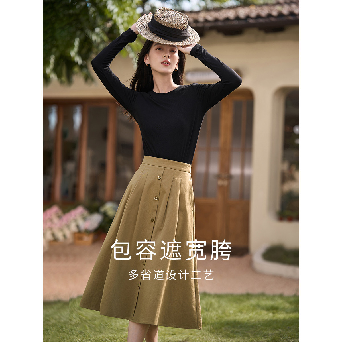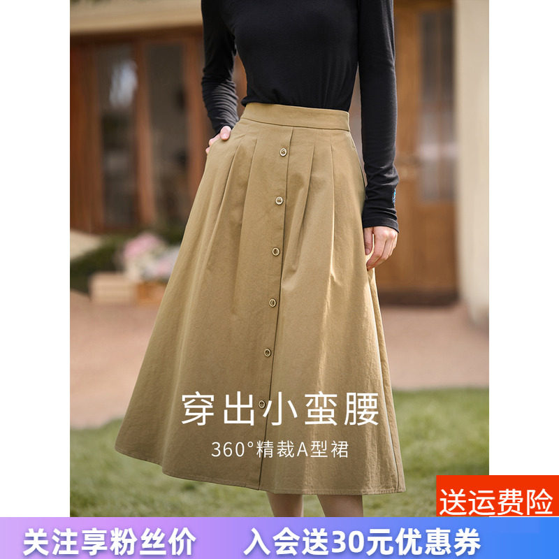 淘宝茵曼正品女装分销店,茵曼高腰法式复古女士2023子半身裙