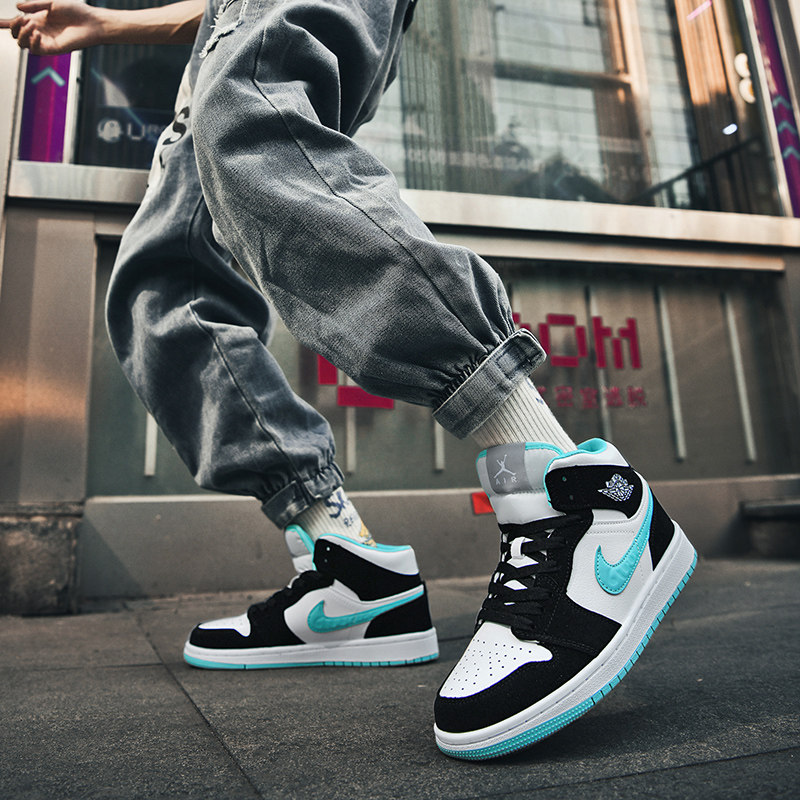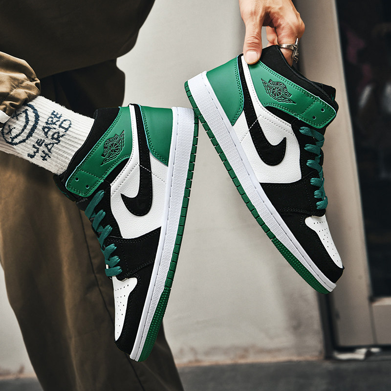 淘宝港风潮鞋企业店,aj男鞋空军一号高帮板鞋黑绿色休闲运动鞋莆田篮球实战训练鞋女