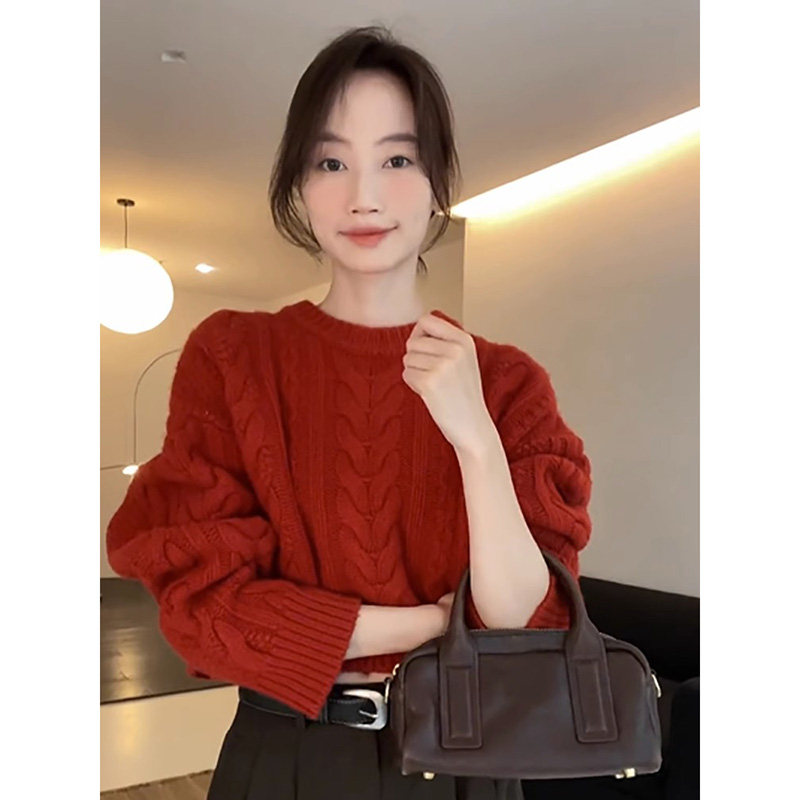 淘宝半画 Studio,【现货+送运费险】秋冬新款爆款秋超好看慵懒圆领红针织衫毛衣女
