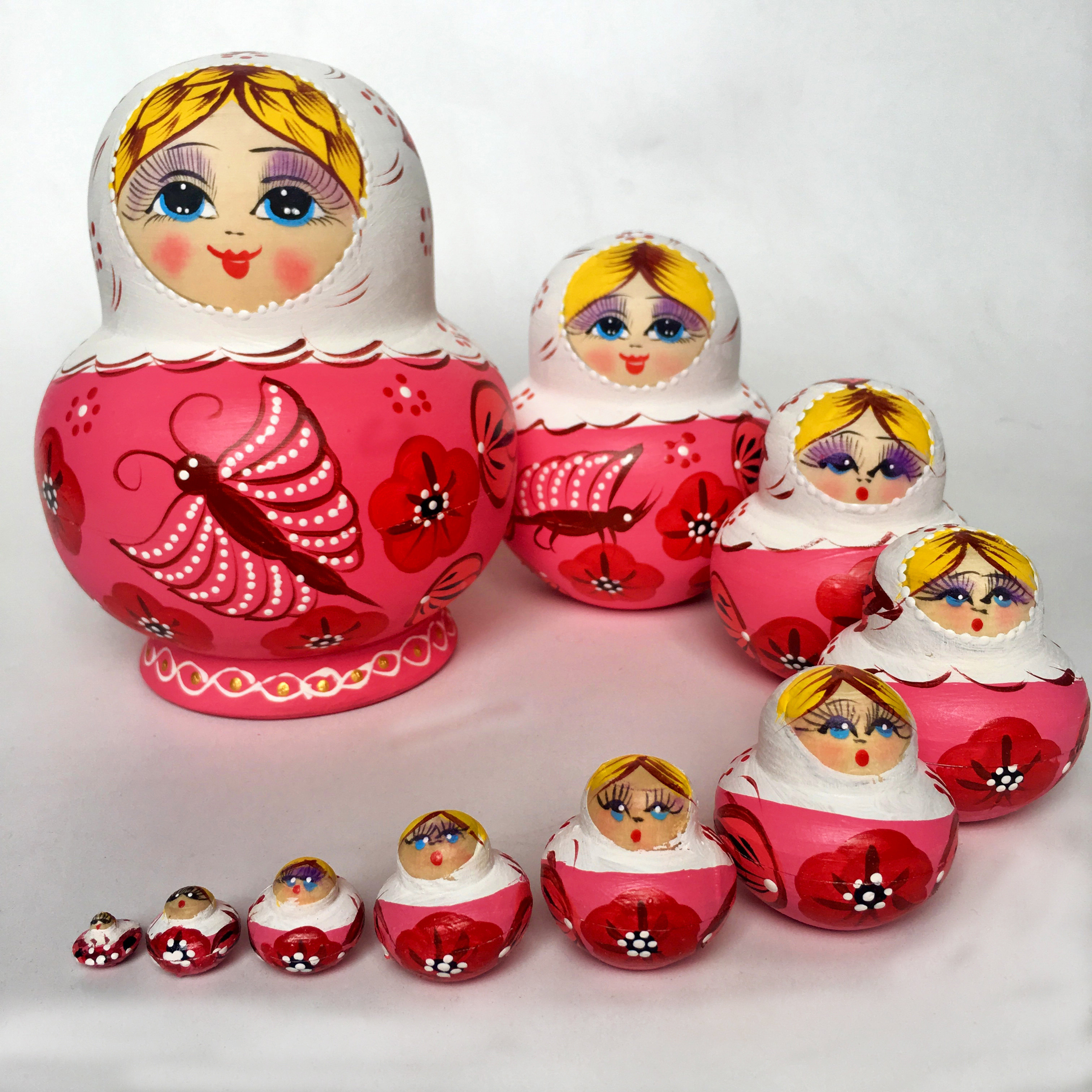 淘宝俄罗斯套娃工作室,正品俄罗斯套娃10层蝴蝶许愿娃娃
