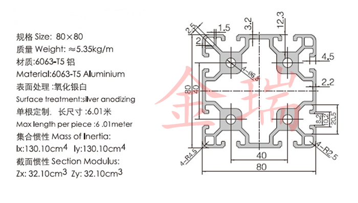 淘宝金瑞铝型材配件批发,欧标8080重型流水线ob8080铝型材