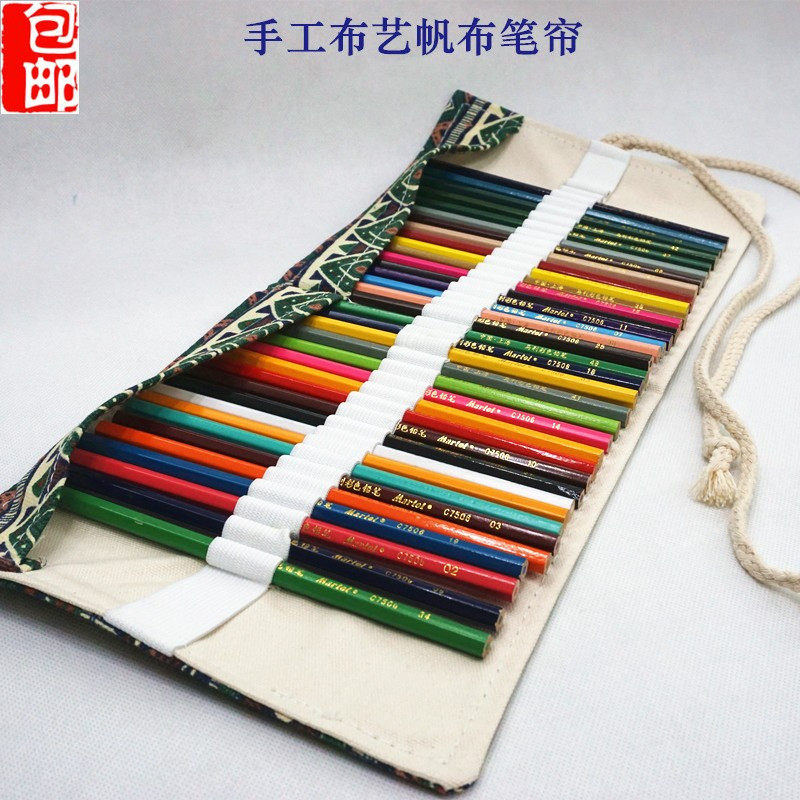 淘宝逸凡美术画材,包邮手工36帆布男女彩色铅笔帘笔袋