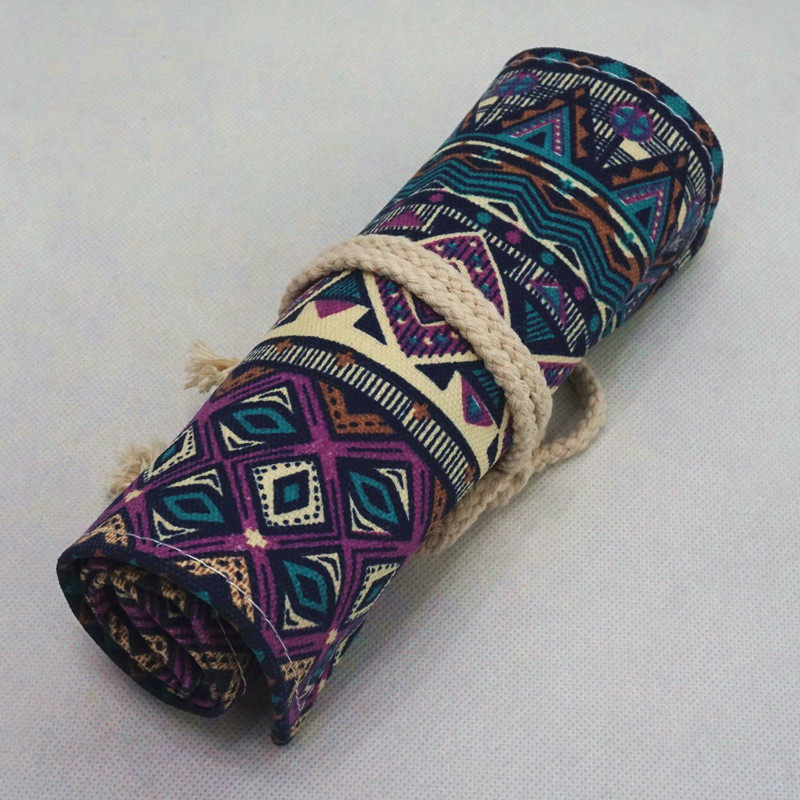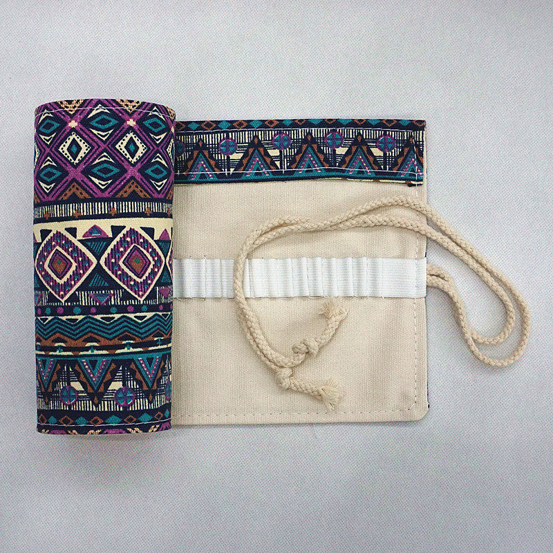 包邮布艺手工笔袋36色帆布笔帘男女彩色铅笔帘民族风小清新卷笔袋